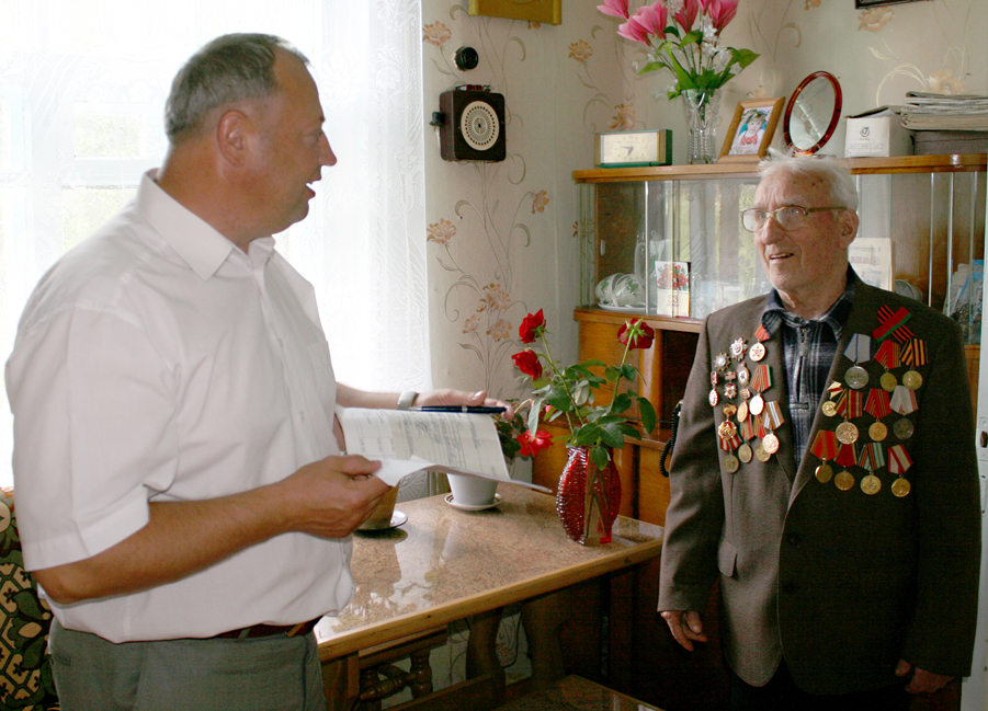 Первым поздравления принимал ветеран Великой Отечественной войны Адам Корытко из агрогородка Вейно. Адам Яковлевич был призван в армию в сентябре 1943 года, сражался в составе I Белорусского фронта. За годы войны не раз смотрел в глаза смерти. После тяжелого ранения, полученного в 40 километрах от Берлина, семь месяцев находился в госпитале. Среди боевых наград – орден Отечественной войны I степени и медаль «За отвагу».