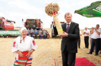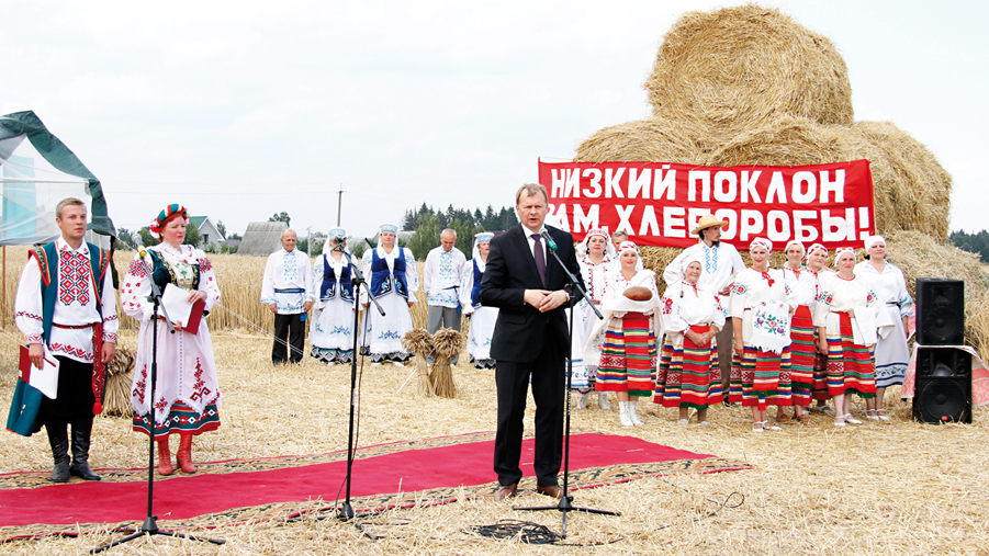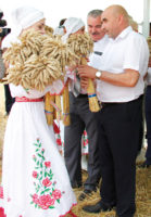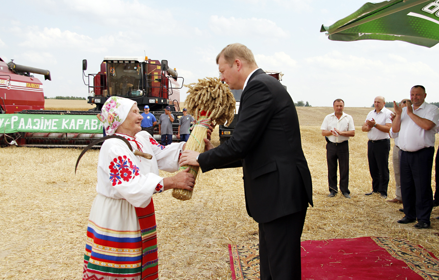 Першы сноп новага ўраджаю быў урачыста паднесены гаспадару вобласці Уладзіміру Даманеўскаму.