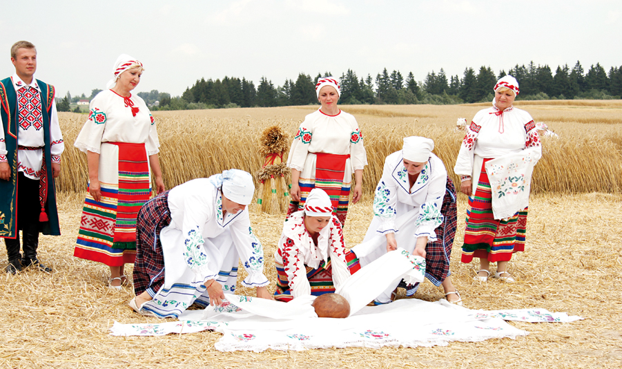 “Добры дзень жыту яравому!” – заспявалі ўдзельнікі мастацкай самадзейнасці. Праводзячы абрад, пакланіліся буйному коласу, уславілі хлеб ды тры разы першы сноп падкінулі, загадваючы жаданні, каб надвор’е было спрыяльным ды каравай багатым.