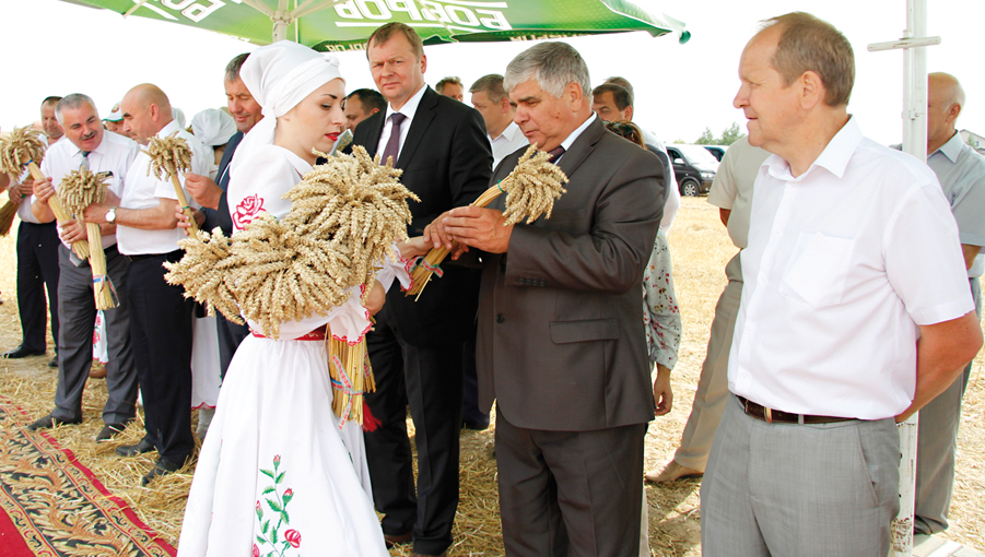 Сімвалы дабрабыту – снапы новага ўраджаю былі ўручаны старшыням райвыканкамаў. А каравай з зерня 2016 года губернатару паднеслі, перадаючы эстафету, з надзеяй, што сёлета хлеба будзе яшчэ больш.