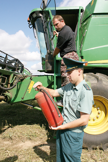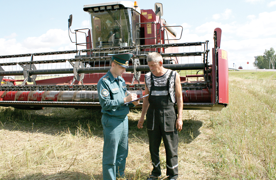 На поле возле деревни Никитиничи работало несколько комбайнов. Все они укомплектованы огнетушителями, с механизаторами проведен инструктаж. Вот только прочные знания по технике пожарной безопасности показали не все комбайнеры. Поэтому они были проинструктированы прямо в поле.