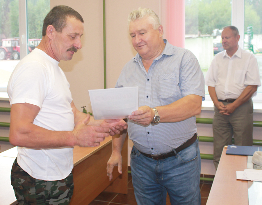Заместитель генерального директора по общим вопросам РУП «Могилевэнерго» Вячеслав Подольский и председатель областной организации Белорусского профсоюза работников энергетики, газовой и топливной промышленности Николай Цариков 17 августа в торжественной обстановке поздравили с трудовой победой комбайнеров филиала «Вендорож» РУП «Могилевэнерго», которые намолотили по тысяче тонн зерна: Николая Аникеенко, Виталия Смолякова, Алексея Маюрникова, Антона Белова, Владимира Новикова, Александра Астапенко, а также водителей, перевезших по тысяче тонн: Олега Адамчука и Владимира Борового.