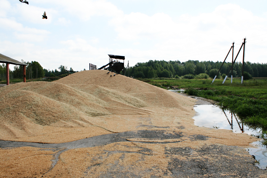 Следующий пункт проверки – ОАО «Фирма «Кадино». В ограждении территории местного КЗС имеются свободные проемы, а зерно находится в буквальном смысле в луже, что говорит о неподготовленности объекта к уборочной кампании.
