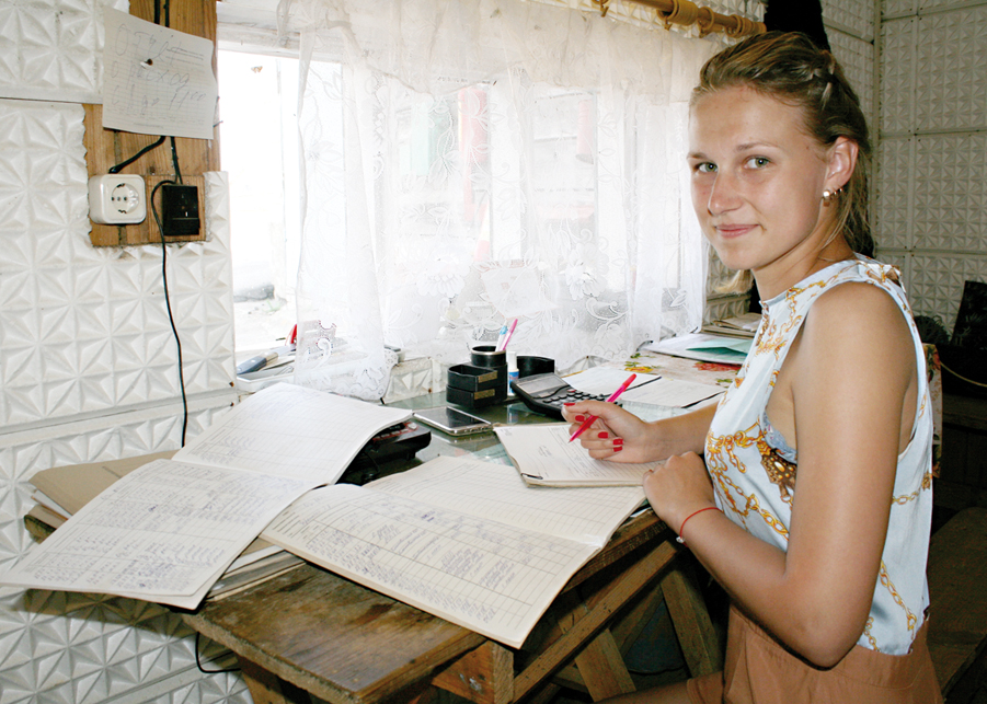 От зерносушилки направляемся на весовую, где нас встречает улыбчивая весовщик Кристина Новикова, которая учится на 4-м курсе в БРУ, а во время летних каникул подрабатывает в хозяйстве. «На зернотоке мне нравится, – рассказывает девушка, – и условия труда здесь хорошие, и коллектив дружный. К тому же, я учусь на инженера, и мне интересно посмотреть на разные виды техники, которая сюда подъезжает».