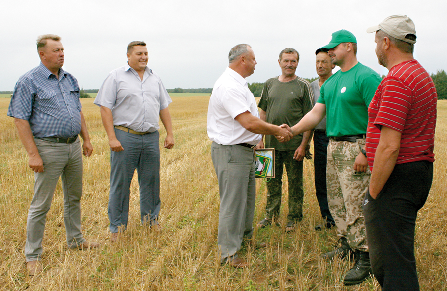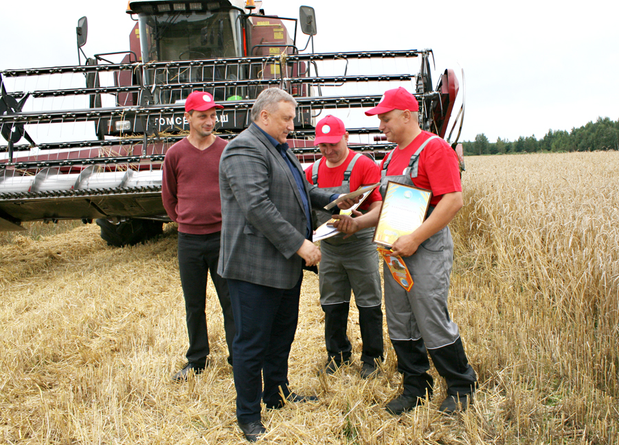 В этот же день в торжественной обстановке прямо на поле за достигнутые высокие показатели председатель райисполкома Анатолий Дутько вручил благодарственные письма и вымпелы старшему комбайнеру филиала «Серволюкс Агро» СЗАО «Серволюкс» Андрею Чулкову и его помощнику Сергею Новикову, также герои жатвы получили кепки и майки с символикой АПК. Глава района сердечно поздравил тружеников с первой победой в этом году и пожелал здоровья, высоких темпов работы и больших намолотов. Почетные грамоты за достижение высоких результатов в ходе уборочной кампании и денежные премии вручил лидерам директор филиала Василий Мазурик. Отметив самоотверженный труд работников, он пожелал хлеборобам новых побед.
