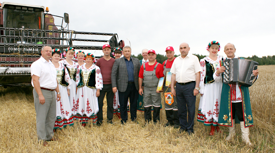 Еще больше поднял настроение передовикам сельской нивы народный ансамбль народной песни «Прыпеўка», а сладкий десерт от хозяйства – мороженое – подарил приятную прохладу.В ОАО «Полыковичи» слова поздравления звучали в адрес водителя Александра Сыромолота. Вручая благодарственное письмо, председатель райкома профсоюза работников АПК Сергей Ерощенко пожелал труженику хорошей погоды, чтобы техника не подводила, а дома всегда ждали. Также профсоюзный лидер поинтересовался у хлебороба условиями труда, спросил о режиме работы, организации питания в поле.
