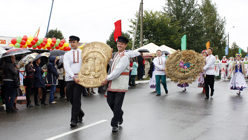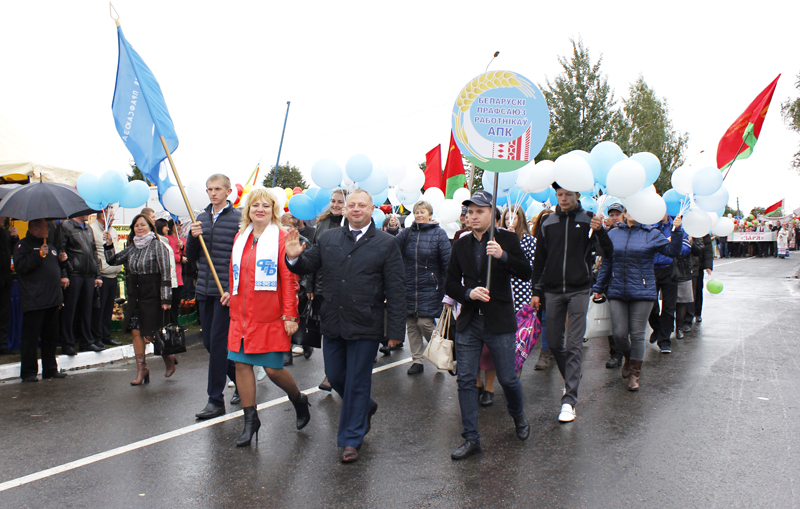 Районный праздник «Дажынкі-2017» прошел в пятницу в агрогородке Сухари. С самого утра здесь царило праздничное настроение. К 12 часам на торжественный парад выстроились лучшие представители трудовых коллективов сельхозпредприятий и организаций района, участники художественной самодеятельности. Колонну возглавил председатель райисполкома Анатолий Дутько.
