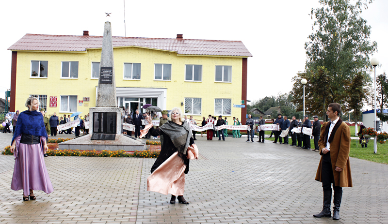 О каждом коллективе было сказано много теплых слов, названы лучшие люди, кто своим добросовестным трудом приумножает благосостояние района. Началось торжество с возложения венков к памятнику погибшим в годы Великой Отечественной войны. Говоря об истории агрогородка Сухари, ведущие отметили, что летопись этого населенного пункта начинается с 1560 года. В XVI веке село называлось Сухаревичи, по фамилии его владельца. В 1784 году в Сухарях уже проживало 645 человек, были деревянная церковь и водяная мельница. В конце XVIII века императрица Екатерина II подарила село графу Петру Завадовскому – первому министру просвещения России, и Сухари стали центром имения, куда входили прилегающие деревни.