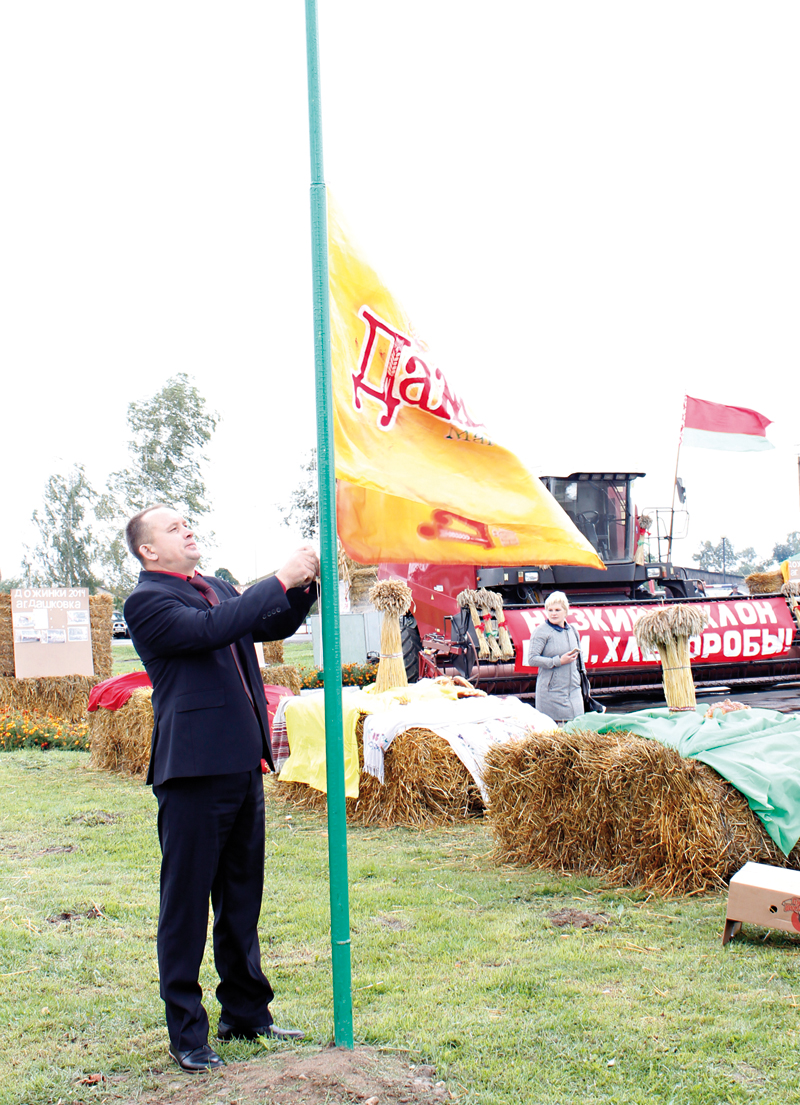 Почетное право поднять флаг «Дажынкі-2017» было предоставлено победителю районного соревнования за достижение лучших показателей на уборке урожая зерновых и зернобобовых растений в 2017 году трактористу-машинисту ЗАО «Агрокомбинат «Заря» Владимиру Корсаку.