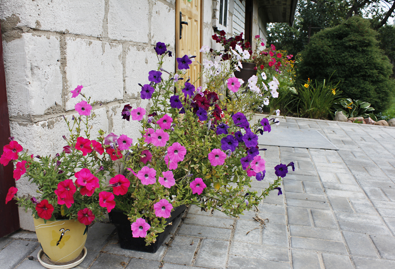 В этом году небывалой красотой порадовали петунии. Купив на Минском рынке саженцы, хозяйка целое лето не могла нарадоваться изобилию красок. Сейчас петунии отцветают. Возле дома у Мироновых есть уютная беседка с аркой из дикого винограда. В свободное время здесь можно отдохнуть, любуясь на благоухающий цветник. Кстати в Буйничском сельском Совете подворье Мироновых отметили как одно из лучших по благоустройству.