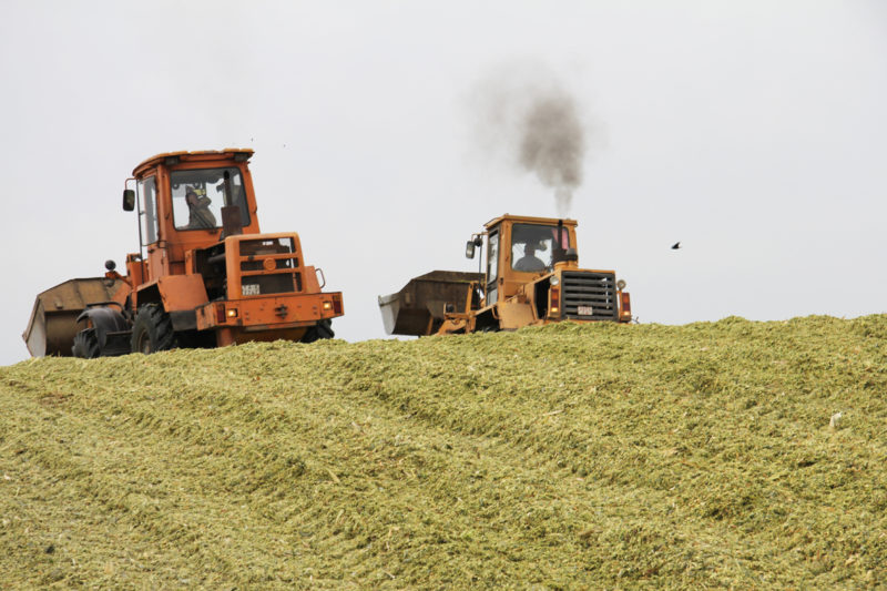 Укладка и трамбовка кукурузы в траншеи — непростое дело, здесь необходимы особое внимание и сноровка. Технология производства силоса проста: измельченную зеленую массу закладывают в траншеи, утрамбовывают. Получается неплохая герметичность и отсюда — качественный силос.
