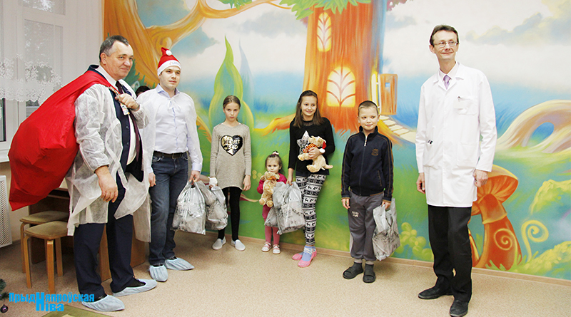 В игровую комнату отделения и каждую палату заглянул добрый Дед Мороз с огромным мешком подарков. Вместе с Анатолием Хищенко были также представитель выступившей в качестве спонсора компании ООО «Декбера» Роман Рудянов, главный врач областной детской больницы Игорь Каско и другие сотрудники.
