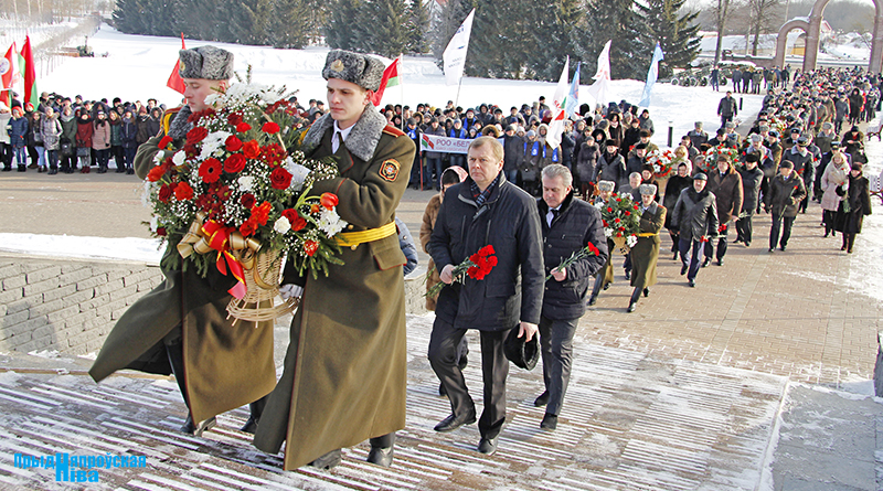 Сегодня было многолюдно на мемориальном комплексе «Буйничское поле». Почтить память героев, ценою жизней отстоявших Родину, пришли руководители областных структур, города, Могилевского района, военнослужащие, ветераны, представители трудовых коллективов, общественности, молодежи.