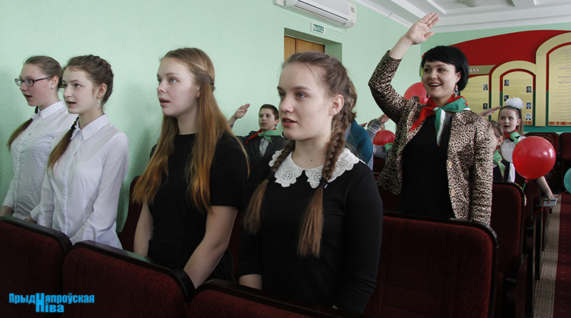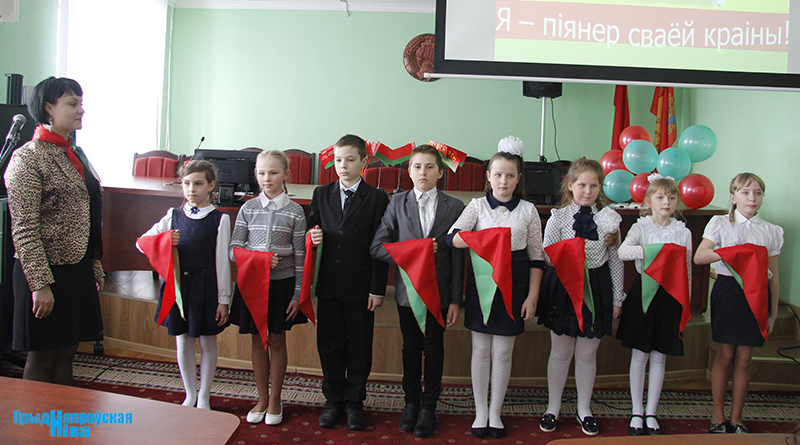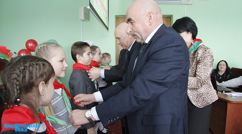 Праздничное мероприятие на этом не завершилось. В торжественной форме школьникам вручили билеты членов Белорусского республиканского союза молодежи. Прошел также и традиционный ритуал приема в ряды пионеров – бывшие октябрята торжественно пообещали любить свою Родину, быть добрыми, честными и справедливыми, следовать уставу и традициям движения, после чего почетные гости повязали ученикам младших классов пионерские галстуки. Ну а дальше – памятные фото!