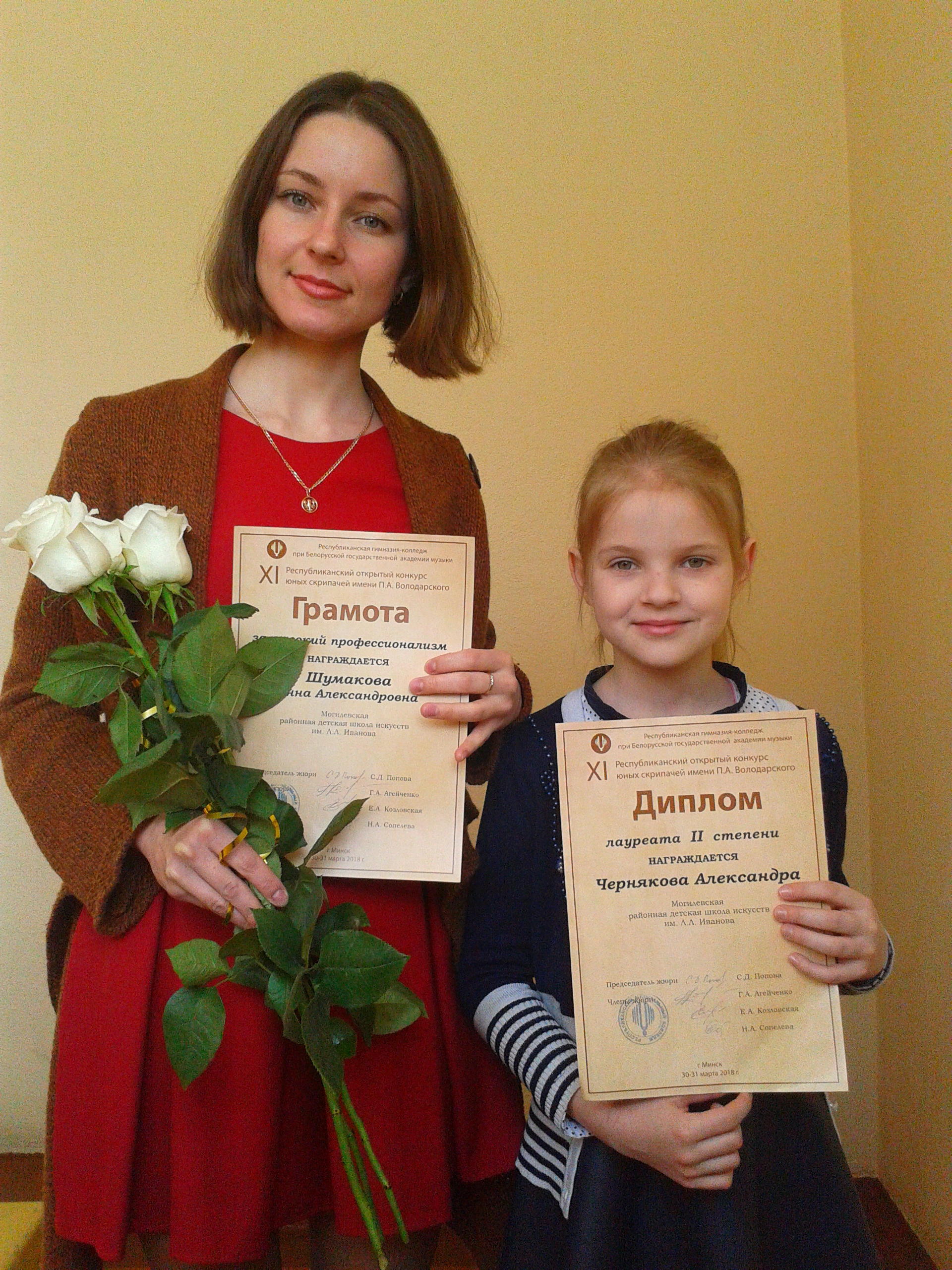 Диплом лауреата II степени привезла учащаяся ГУО «Могилевская районная детская школа искусств имени Л.Л.Иванова» Александра Чернякова (уч. А.А.Шумакова) с XI Республиканского открытого конкурса юных скрипачей имени П.А.Володарского (г.Минск).