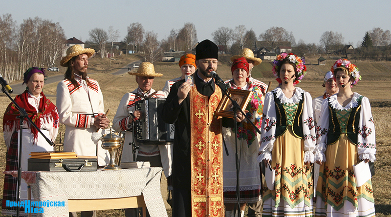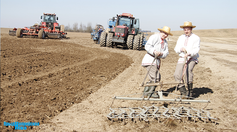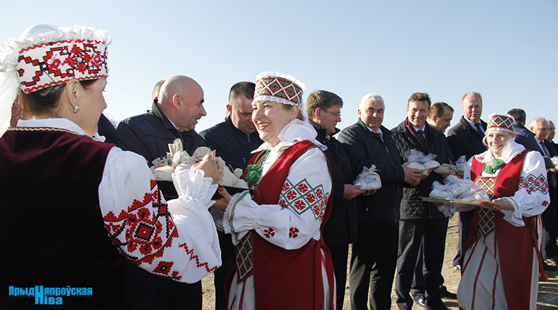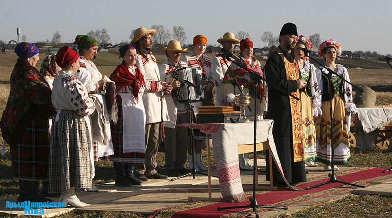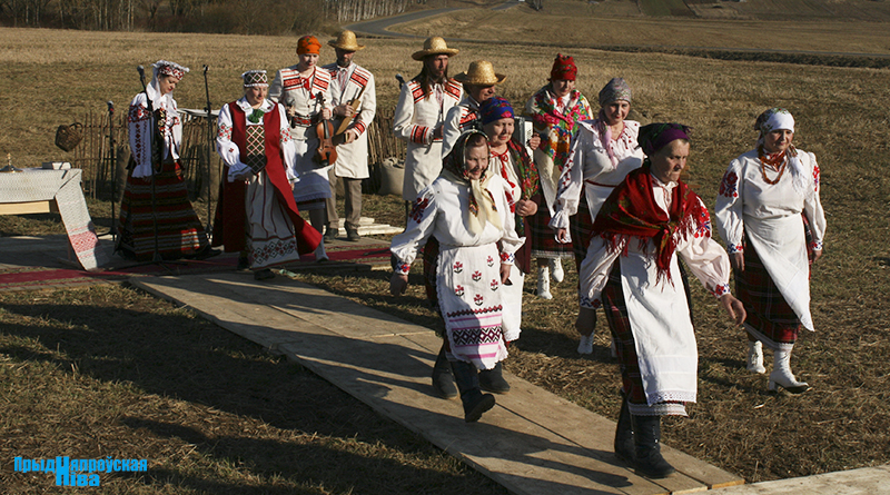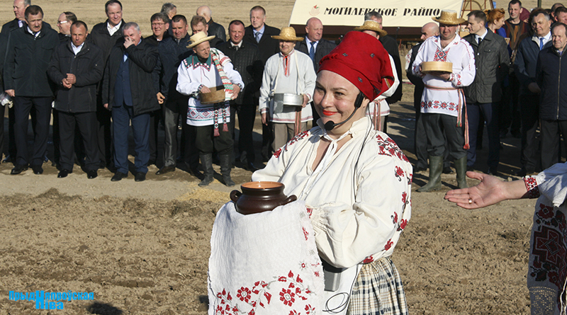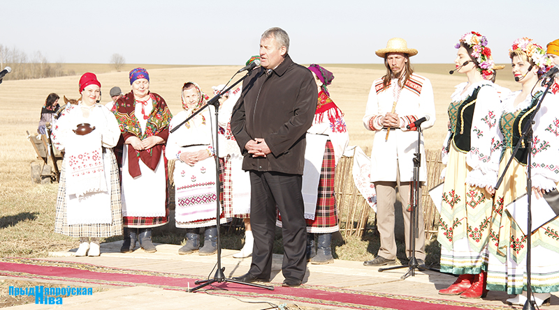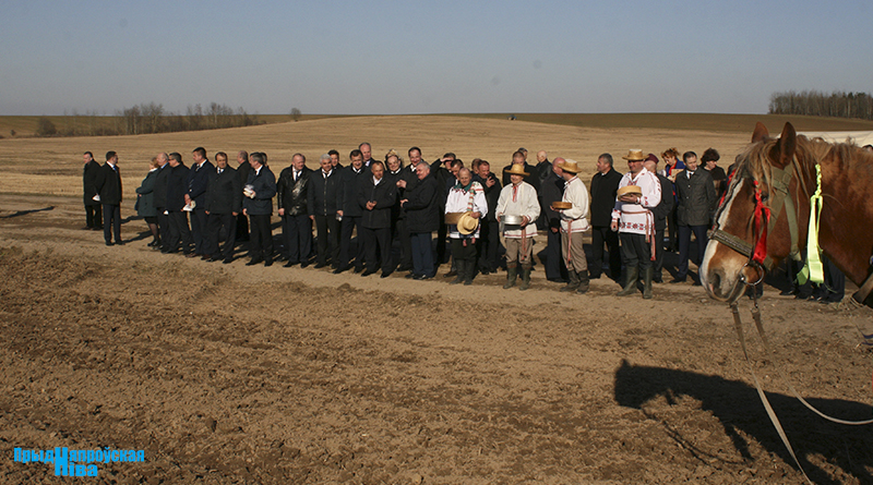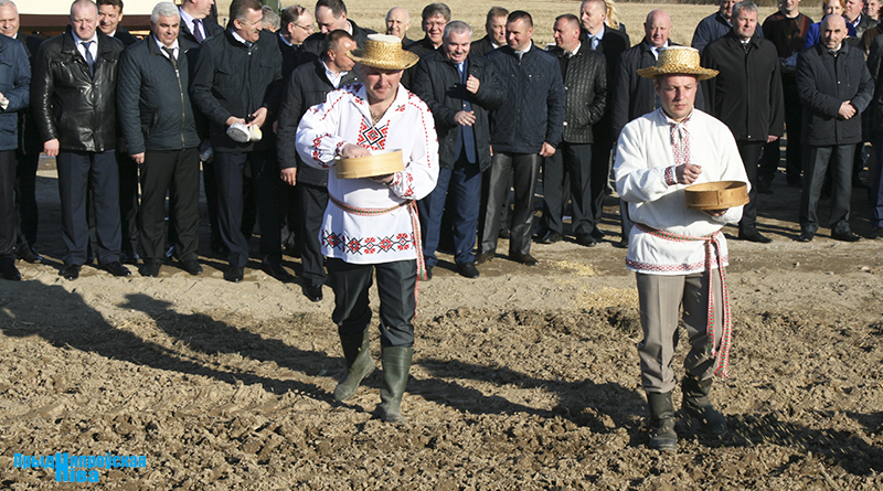 «Так засявайце ж нівы, людзі! Зямля-матуля, зерне ты прымай!» – звучат голоса работников культуры, и, наконец, наступает время для самого обряда. Празднично одетые женщины закопали в землю горшочек с пшенной кашей – на ровные и сильные всходы, как считали наши предки. А «гаспадары», нарядившись в чистые льняные рубахи, подпоясавшись красными самоткаными поясами, не забыв и про соломенные шляпы, вышли в поле, где по старинке посеяли зерно, разбрасывая его горстями из лукошек. Первую борозду вспахали при помощи плуга и лошади, после чего был дан старт машинному труду.