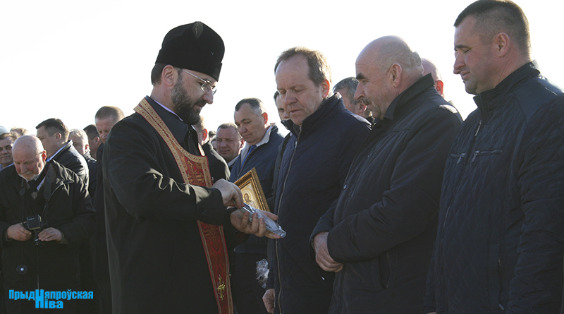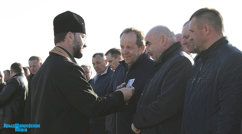 Продолжилось торжество молитвой благочинного церквей Могилевского районного округа, настоятеля Свято-Покровского храма Пресвятой Богородицы агрогородка Вейно отца Николая. Он передал гостям иконы, символизирующие благословение на дальнейшие добрые дела, окропил участок поля, семена, тружеников и сельскохозяйственную технику святой водой.