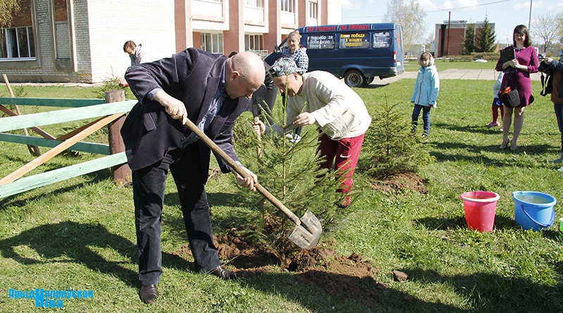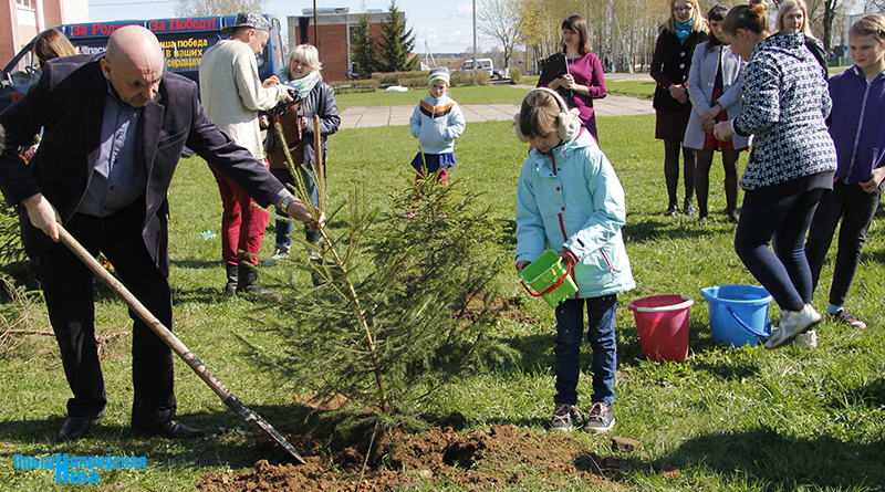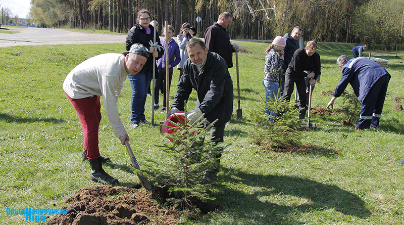 В Заводской Слободе высадили аллею из 22 елей — именно столько ветеранов войны проживает сегодня в Могилевском районе