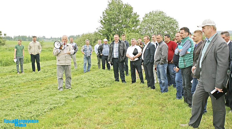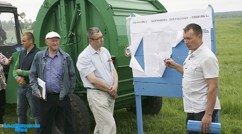 На базе ОАО «Тишовка» состоялся районный семинар, посвященный вопросам заготовки кормов и методам повышения продуктивности сельскохозяйственных животных за счет внедрения современных технологий кормления. На поле вблизи деревни Севостьяновичи, где уже приступили к косовице, участникам семинара был продемонстрирован весь технологический процесс заготовки кормов.