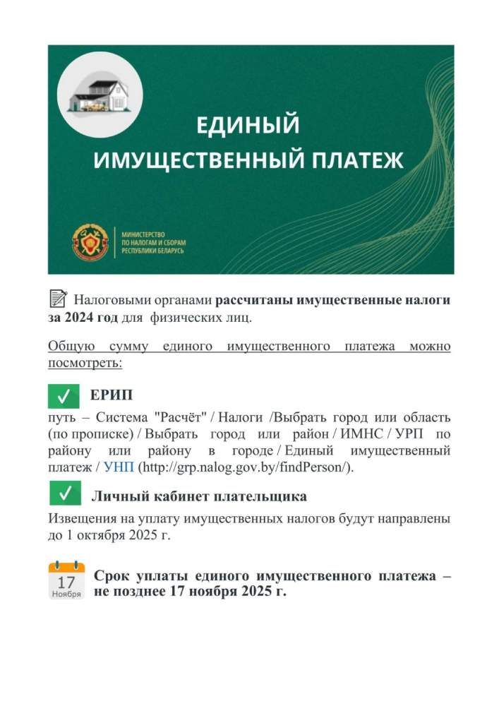 Срок уплаты единого имущественного платежа – не позднее 17 ноября 2025 года.