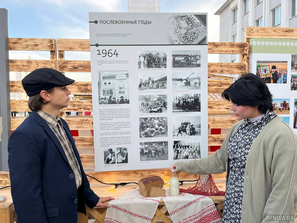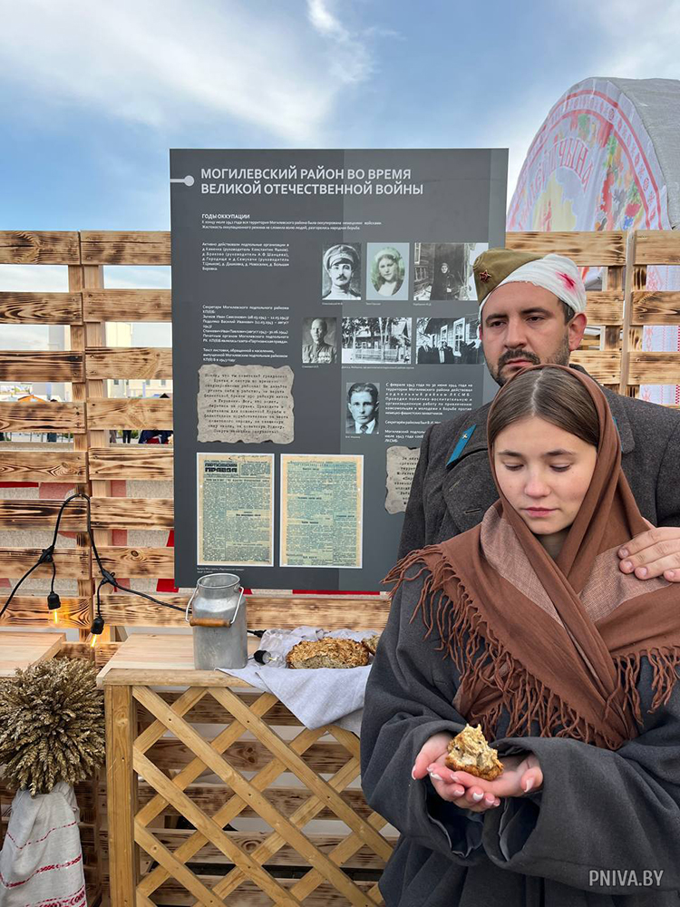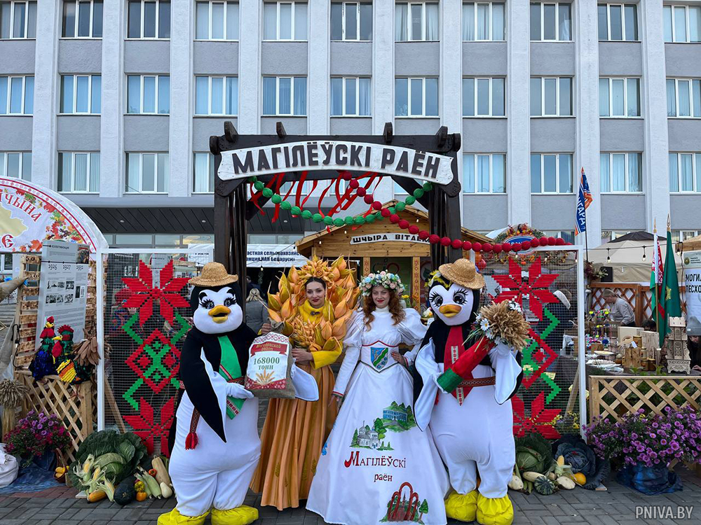 На протяжении всего дня в городе царит атмосфера праздника. Концертные программы, интерактивные площадки, выставки, мастер-классы, квесты, фотозоны, торговые ряды с продукцией предприятий области и многое другое. А еще – выставка-ярмарка «Дажыначны кiрмаш», где представлена сельскохозяйственная продукция предприятий регионов области, выставки-презентации, отражающие агропромышленный потенциал, успехи регионов, туристические, культурные, промышленные и другие бренды. И подворье Могилевского района – одно из самых ярких. А все потому, что концертные номера – от лучших творческих коллективов района, оформление – от самых креативных мастеров своего дела, а прилавки – от сельхозпредприятий, чья продукция известна далеко за пределами района.