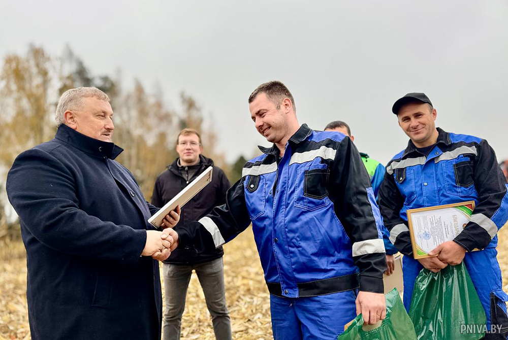 За выдающиеся трудовые достижения были удостоены почетных грамот и ценных подарков старшие комбайнеры Григорий Бокач и Сергей Васильков, намолотившие по 10 тысяч тонн; водитель Николай Куракин, обеспечивший перевозку 7 тысяч тонн; водители Сергей Пуховский и Андрей Палькович, перевезшие по 6 тысяч тонн.