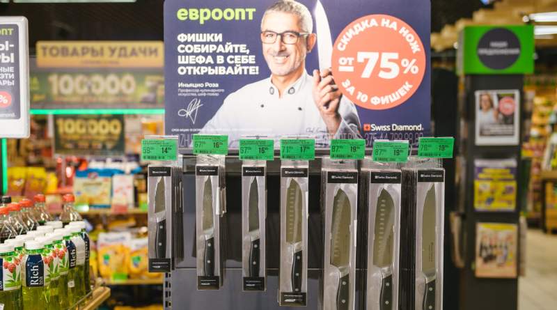 Фишки за покупки начисляются с 13 октября по 7 декабря во всех магазинах «Евроопт». Список магазинов, в которых можно приобрести ножи со скидкой от 75% с 13 октября по 14 декабря, проверяйте на сайте nozhi.evroopt.by.