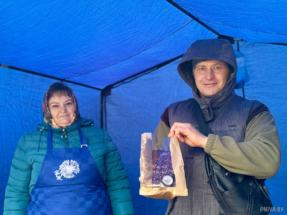 Пекари из агрогородка Семукачи Валерий и Галина Коксяловы привезли на ярмарку свою фирменную выпечку. Их хлеб, изготовленный на хмелевой закваске, сам по себе является произведением кулинарного искусства. Гости ярмарки могли оценить разнообразие: с добавлением чернослива и орехов, классический бородинский, ароматный луковый, нежный пшеничный и изысканный маковый. Их продукция неизменно привлекала очередь из тех, кто знает толк в настоящем домашнем хлебе.