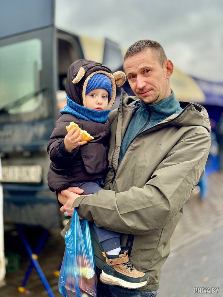 Среди покупателей на ярмарке в Полыковичах можно было встретить не только местных жителей, но и горожан, специально приехавших за качественными продуктами. Житель Могилева Денис Лебедев пришел на ярмарку вместе с сыном Владиком, чтобы запастись овощной продукцией на зиму.
