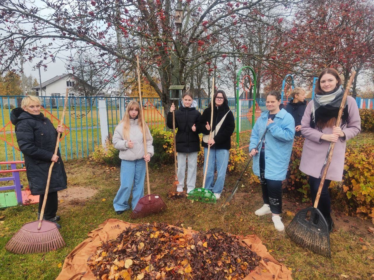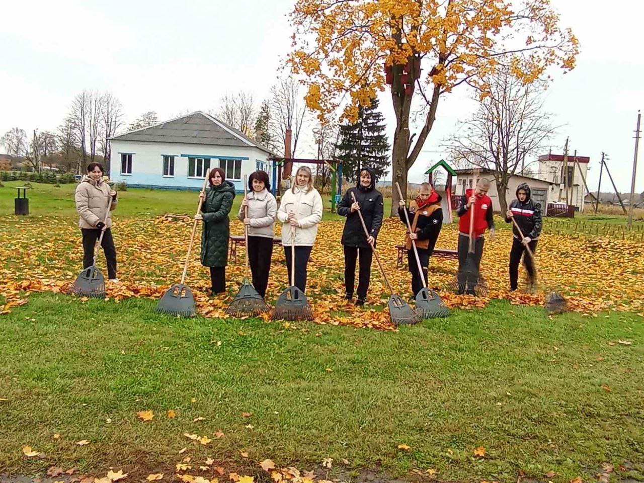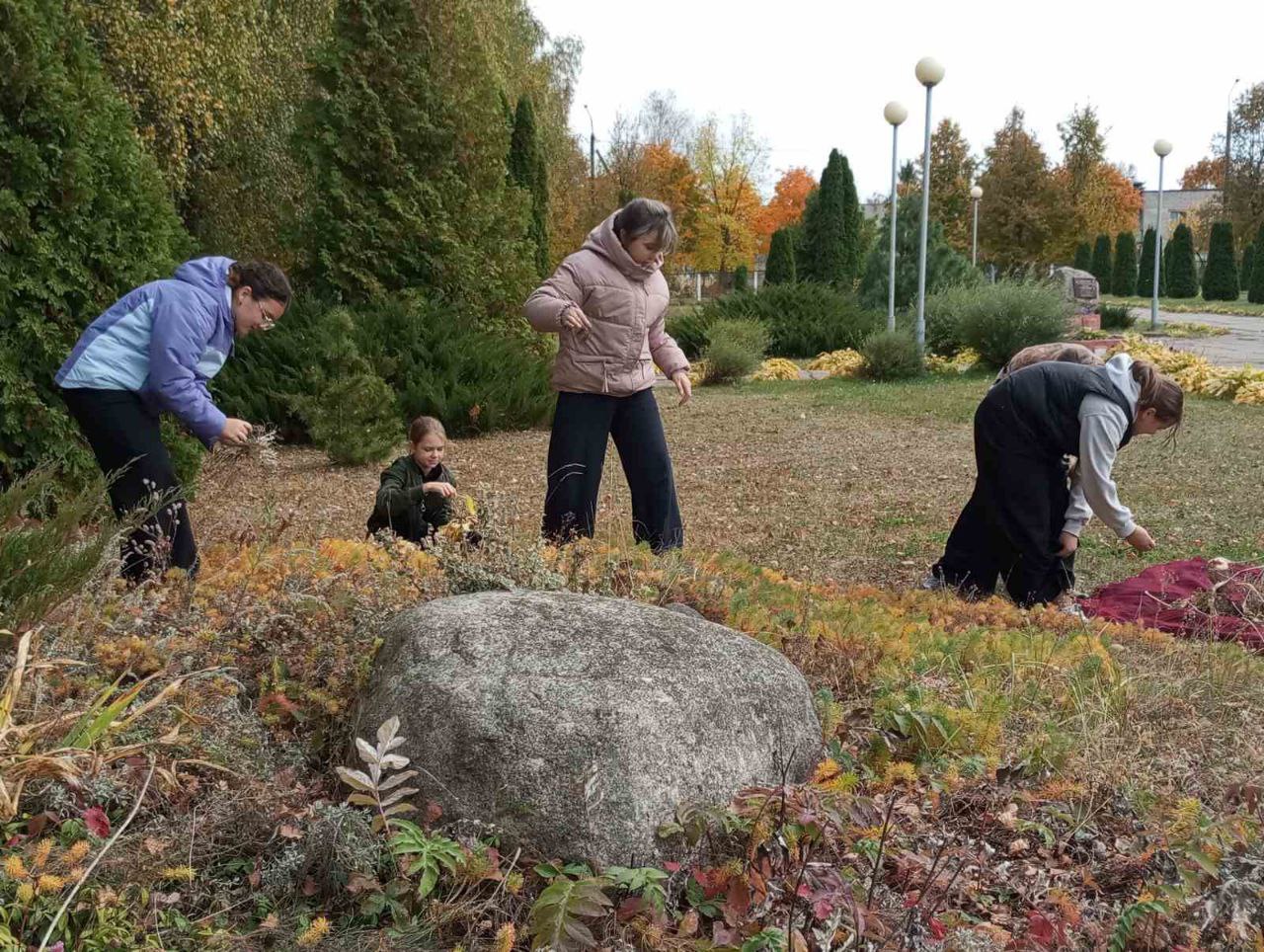 Взрослые и дети (ведь по уже давно сложившейся традиции школьники, следуя примеру взрослых, уделяют большое внимание тому, чтобы на территории родных населенных пунктов и учреждений образования был порядок) обрезали старые растения, собирали опавшую листву, убирали мусор – в общем, делали все необходимое, чтобы вокруг было чисто и красиво.