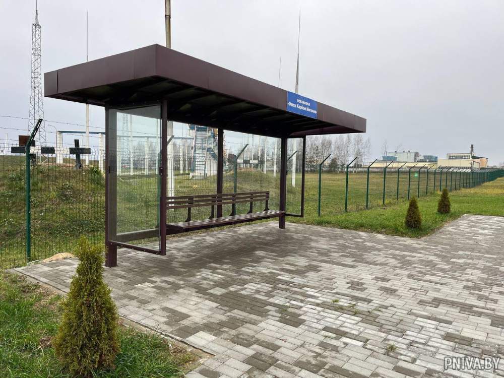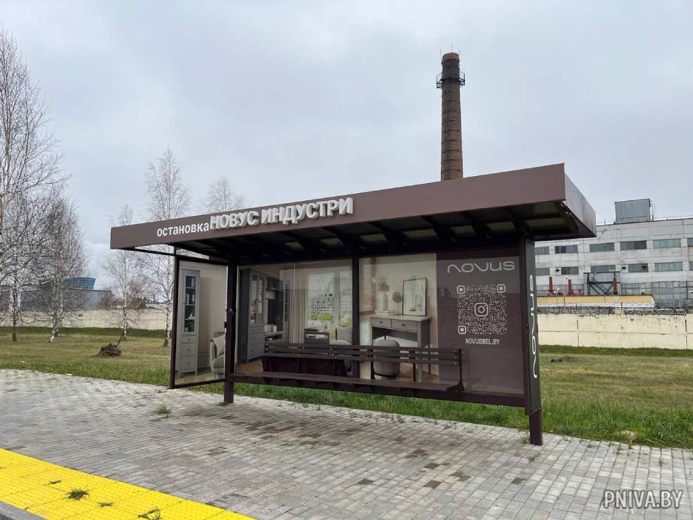 - Свой вклад внесла и компания «Новус Индустри», построив современную остановку с фирменным брендированным дизайном.