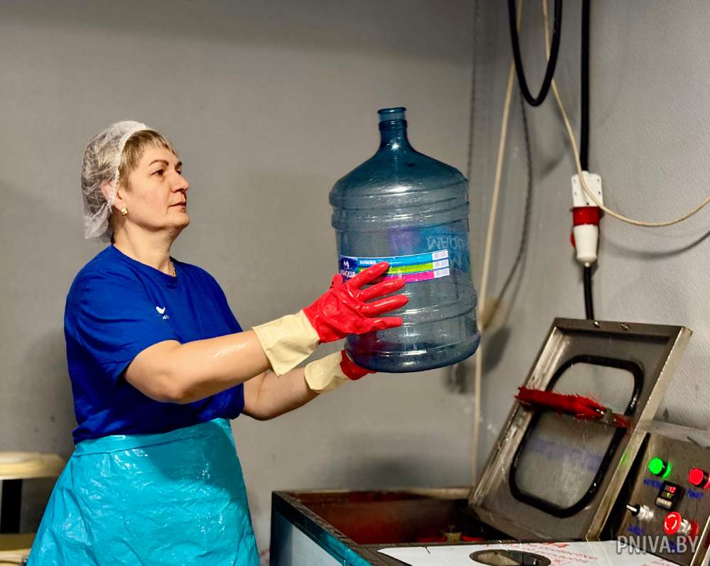 При осмотре цехов видно разнообразие продукции: на одной линии разливают «Родны кут», на другой – готовят к отправке 19-литровые бутыли для кулеров.