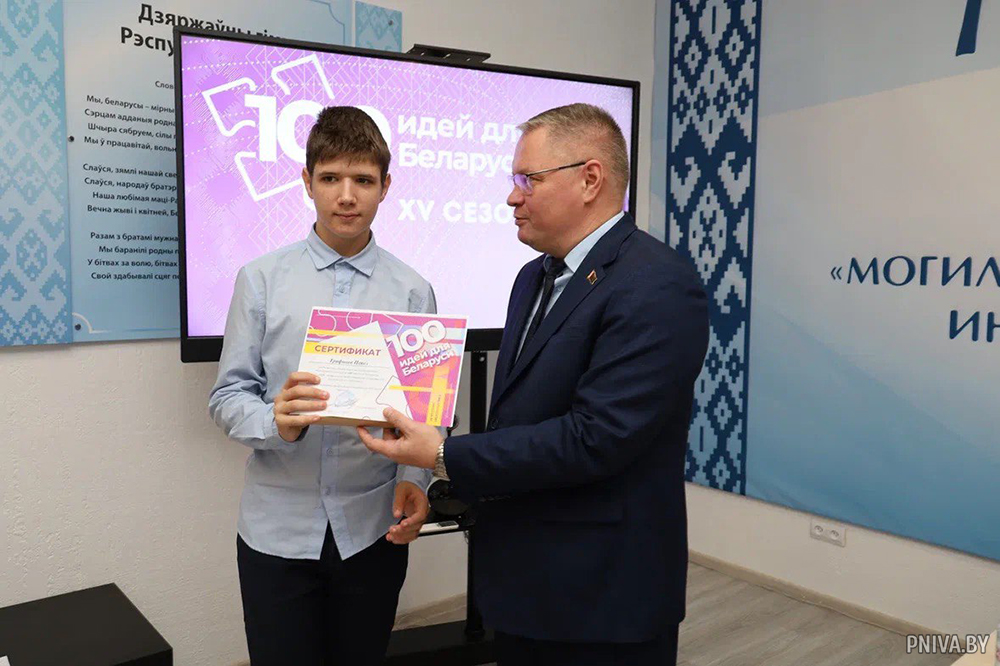 После презентаций и оценок экспертного жюри были определены победители, которые представят свои идеи на следующем этапе конкурса. Все участники получили сертификаты, а лучшим из лучших первый секретарь Могилевской районной организации ОО «БРСМ» Владислав Коновалов вручил дипломы и памятные подарки.