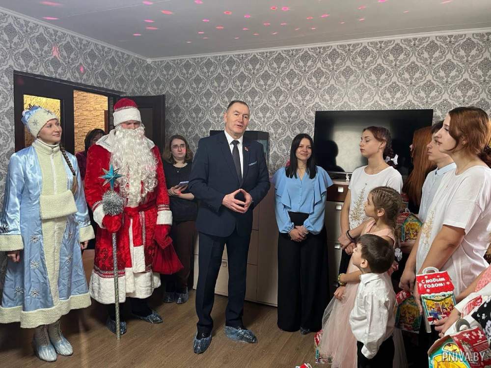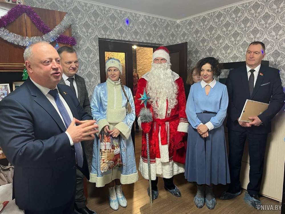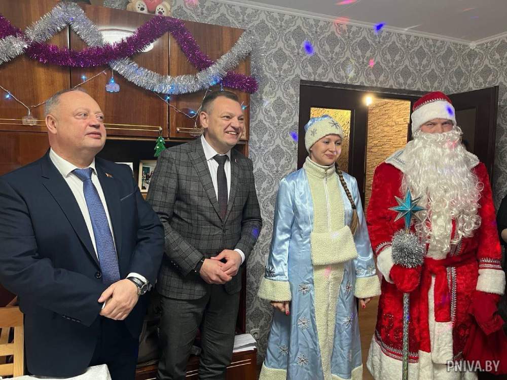 Поздравить ребят и вручить им замечательные новогодние подарки приехали: председатель Могилевского райисполкома Дмитрий Мудрогелов, председатель районного Совета депутатов Сергей Ерощенко, начальник отдела по образованию райисполкома Наталья Колос и заместитель генерального директора по идеологической работе КУП «Могилевоблдорстрой» Сергей Феоктистов.