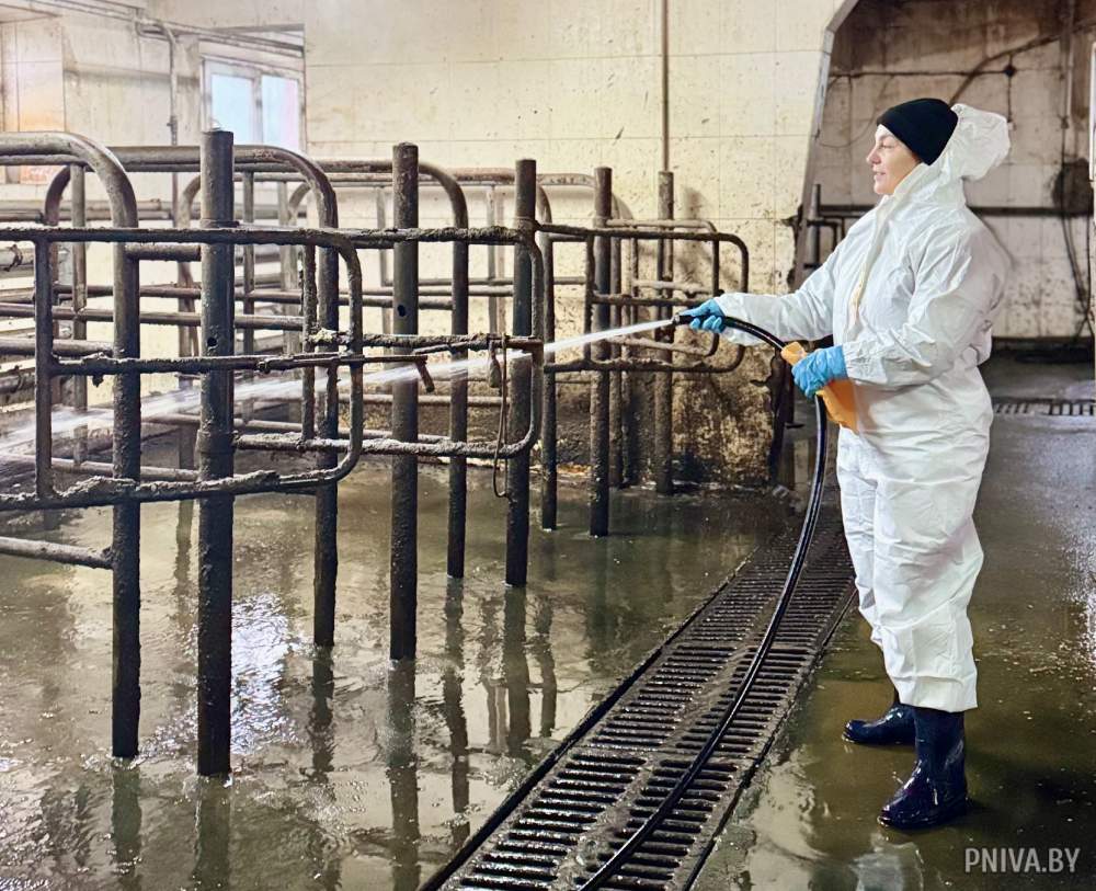 В молочном блоке, где должна царить почти стерильная чистота, представители зооветснаба кропотливыми движениями отмывают стены и коммуникации. Чистота в доильном зале – обязательное условие для получения качественного продукта, и любая дополнительная пара рук в этой ежедневной борьбе за санитарию – большое подспорье.