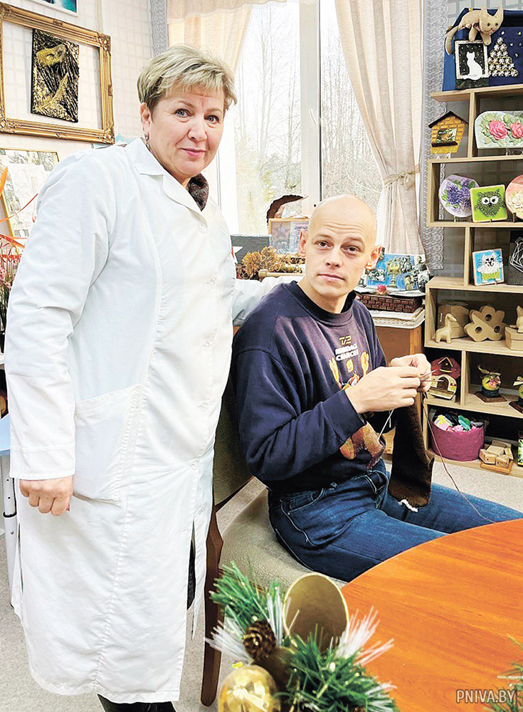 – У нас есть Паша – молодой парень, который очень хорошо вяжет. Причем вяжет руками, а получается – будто машинная вязка. Его сестра Наташа прекрасно создает картины по номерам… Вообще, в мастерских жизнь кипит. Всегда что-то интересное делаем. И для себя, и для выставок. И даже для участия в акциях – например, пошили небольшие рюкзачки и подарили их многодетным семьям в рамках акции «Портфель к школе», – рассказывает Лидия Терешкова. – Но не только в трудовых мастерских люди получают возможность раскрыть свои способности. Например, у нас живет Юля, которая пишет стихи. Есть парень, который хорошо поет, – он готов участвовать в любых концертах. А наш Вова любит группу «Любэ» – у него и фотографии на стенах, и репертуар он весь знает. Когда выступает, очень вживается в образ – человек себя в этом нашел. Есть ребята, которые и за ноутбуками работают, – их немного, но и для них мы тоже условия создаем. В общем, стараемся, чтобы каждый нашел дело по душе.