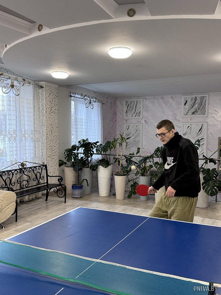 – Кроме того, у нас есть небольшое подсобное хозяйство, – присоединяется к разговору заместитель директора пансионата Эдуард Шуляк. – Грядки, клубника, парники, цветники… Проживающие с удовольствием помогают персоналу поливать, пропалывать, занести урожай в погреб. Это все тоже в рамках трудовой реабилитации и абилитации.