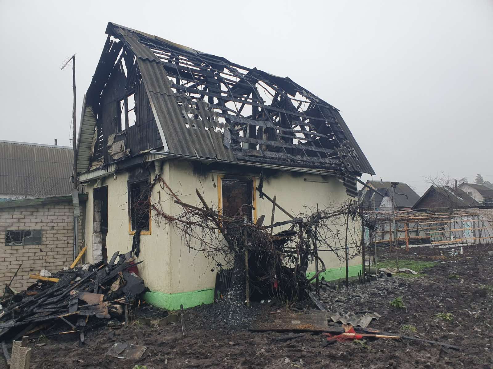 В результате пожара уничтожена кровля, перекрытие, имущество в доме и в гараже.