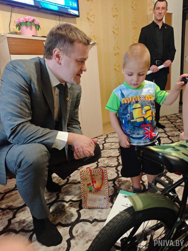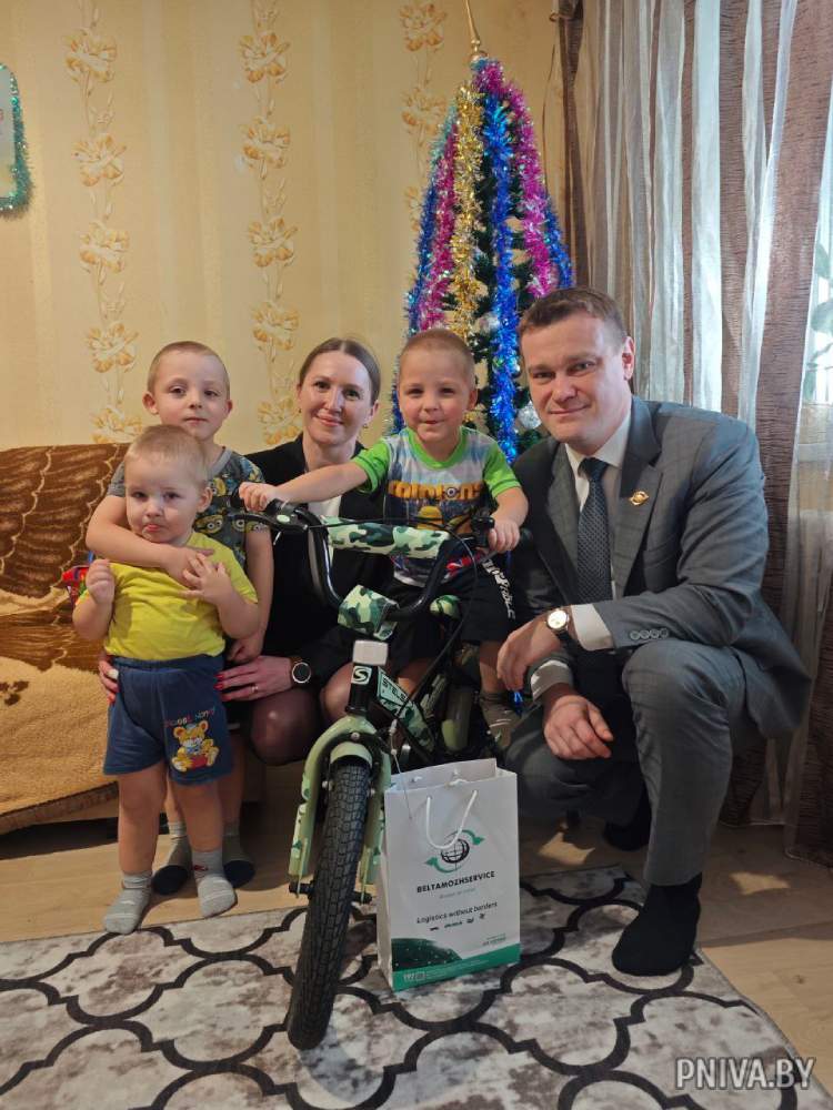 И это было не единственное новогоднее чудо для ребят из этой семьи. Для 3-летнего Лёши добрым волшебником стал директор Могилевского филиала РУП «Белтаможсервис» Александр Скачковский. Руководитель предприятия, которое работает в тесной связи с субъектами частной формы собственности, подарил мальчику велосипед!