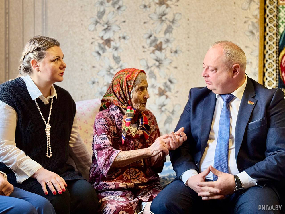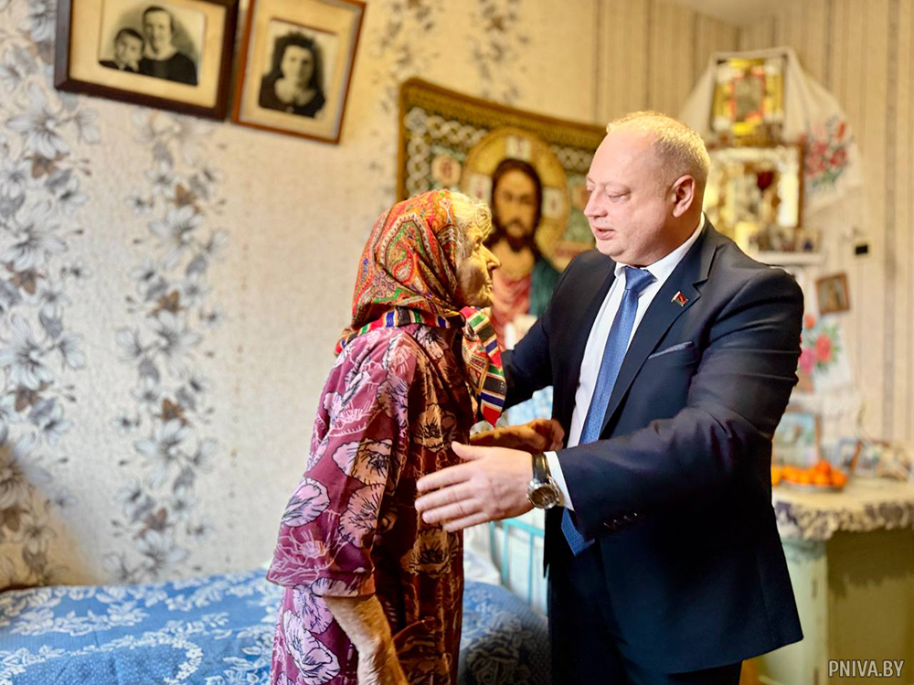 — Уважаемая Елена Ивановна, разрешите от всей души поздравить вас с наступающими праздниками. Этот визит — лишь маленькая частица той огромной благодарности, которую мы испытываем к вам. Хочу особо отметить, что в нашей Республике Беларусь на государственном уровне уделяется внимание вопросам поддержки и социальной защищенности старшего поколения. И вот такие акции, как «От всей души», — подтверждение тому, что о вас помнят, вас ценят и хотят, чтобы ваша жизнь была наполнена уважением и спокойствием.