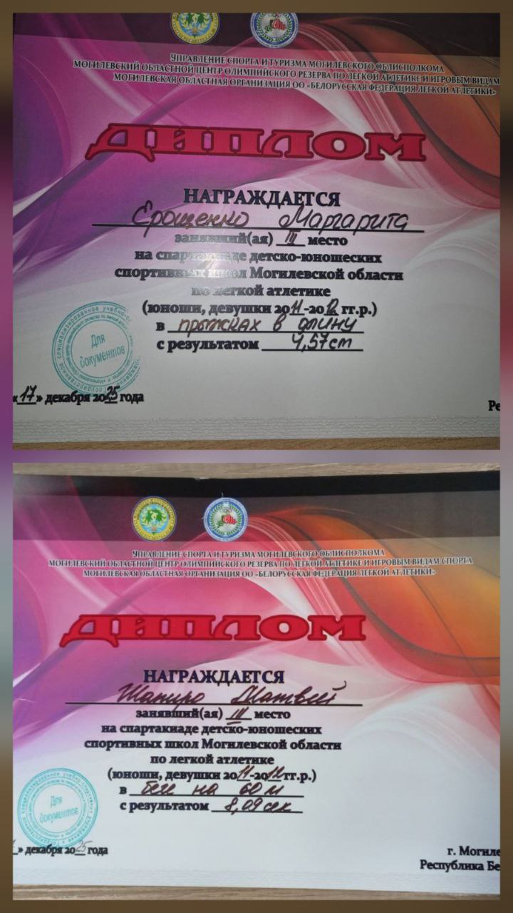 17-18 декабря в Могилёве состоялась спартакиада ДЮСШ Могилёвской области по лёгкой атлетике. В соревнованиях среди юношей и девушек 2011-2012 г.р. наши спортсмены показали блестящий результат, в упорной борьбе завоевав две почётные медали!