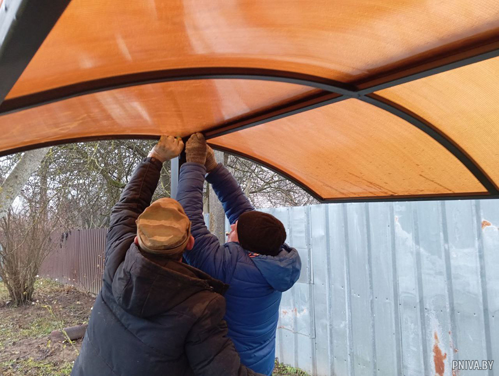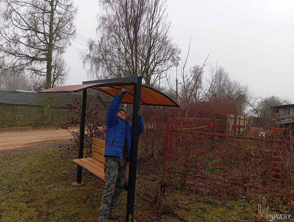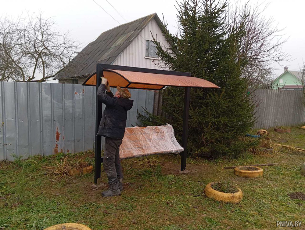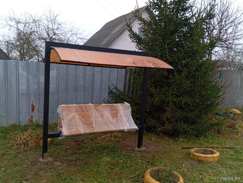 Совсем недавно удобные скамеечки с навесами от дождя появились в деревнях Новое Пашково, Хатки, Волоки и в агрогородке Речки. Всего же установлено 8 комплексов. Еще 3 – на подходе.