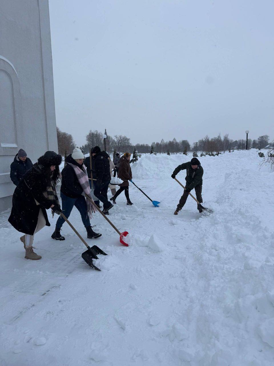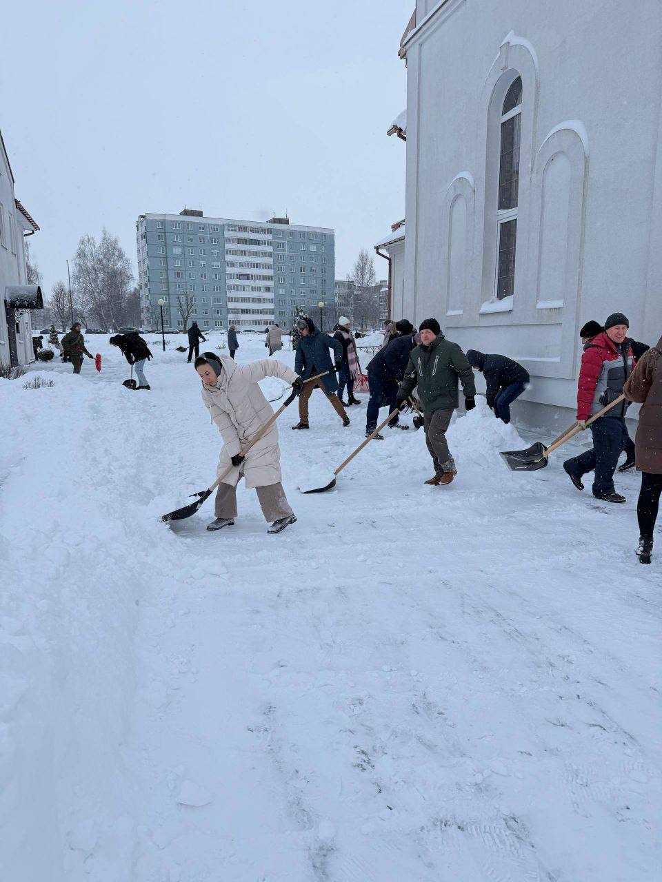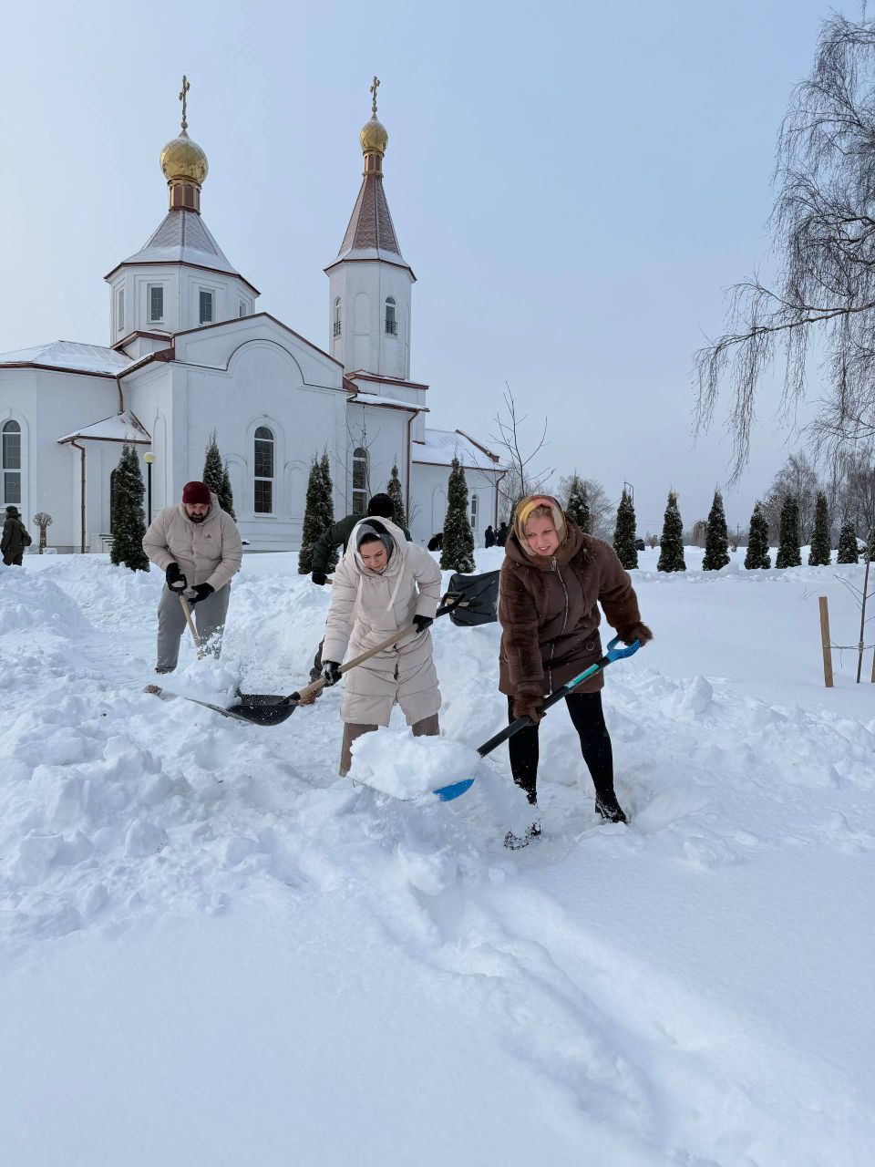 Акция добра: активисты и жители Могилевского района расчистили от снега территорию храма в Буйничах