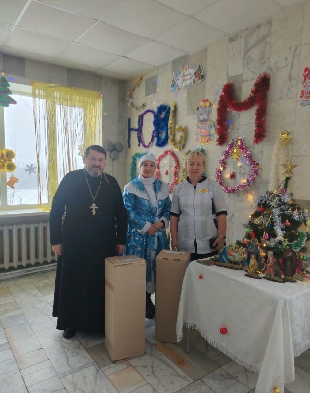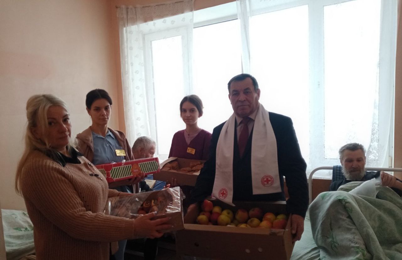 В канун Рождества в рамках благотворительной акции «От всей души» представители Могилевского районного центра социального обслуживания населения совместно с председателем Могилевской районной ветеранской организации Федором Пинчуком, председателем Могилевской районной организации Белорусского Общества Красного Креста Сергеем Вольковским, настоятелем Храма Успения Пресвятой Богородицы иереем Отцом Игорем посетили граждан, которые находятся на медико-социальных койках в Сухаревской и Дашковской участковых больницах.