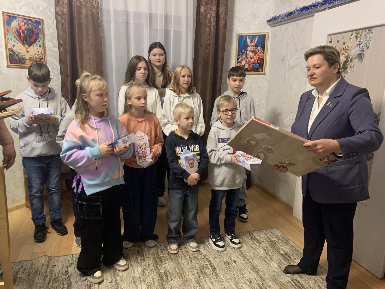 В деревне Николаевка находится еще один детский дом семейного типа. С его хозяйкой, родителем-воспитателем Инессой Михайловной Кулешовой, Наталья Тарасенко знакома много лет. Инесса Михайловна – опытный педагог, профессионал своего дела, добрый и жизнерадостный человек. Неисчерпаемой энергией и позитивом она заражает своих подопечных, погружая детей в атмосферу дружбы, уюта и тепла. В подарок каждому депутат подготовила сладкие подарки и наборы для творчества. За чаепитием ребята рассказали о самых ярких событиях уходящего года, участниками которых они стали. Это и кулинарный мастер-класс с самим Э.Запашным, и путешествия в Брест, Гродно и столицу нашей родины г.Минск. Дети без умолку рассказывали о своей учебе, куда планируют поступать в дальнейшем, о том, какие праздничные мероприятия посетили. Также поведали депутату о своей мечте — побывать в Палате представителей и увидеть Овальный зал, где работают депутаты. Н.Тарасенко пообещала, что во время летних каникул мечта ребят обязательно осуществиться!
