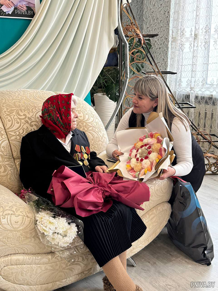 Кроме этого, к Агафье Мостовой со словами благодарности и теплыми пожеланиями обратилась заместитель начальника управления по труду, занятости и социальной защите райисполкома Ольга Банах, вручив Благодарственное письмо районного Совета ветеранов.