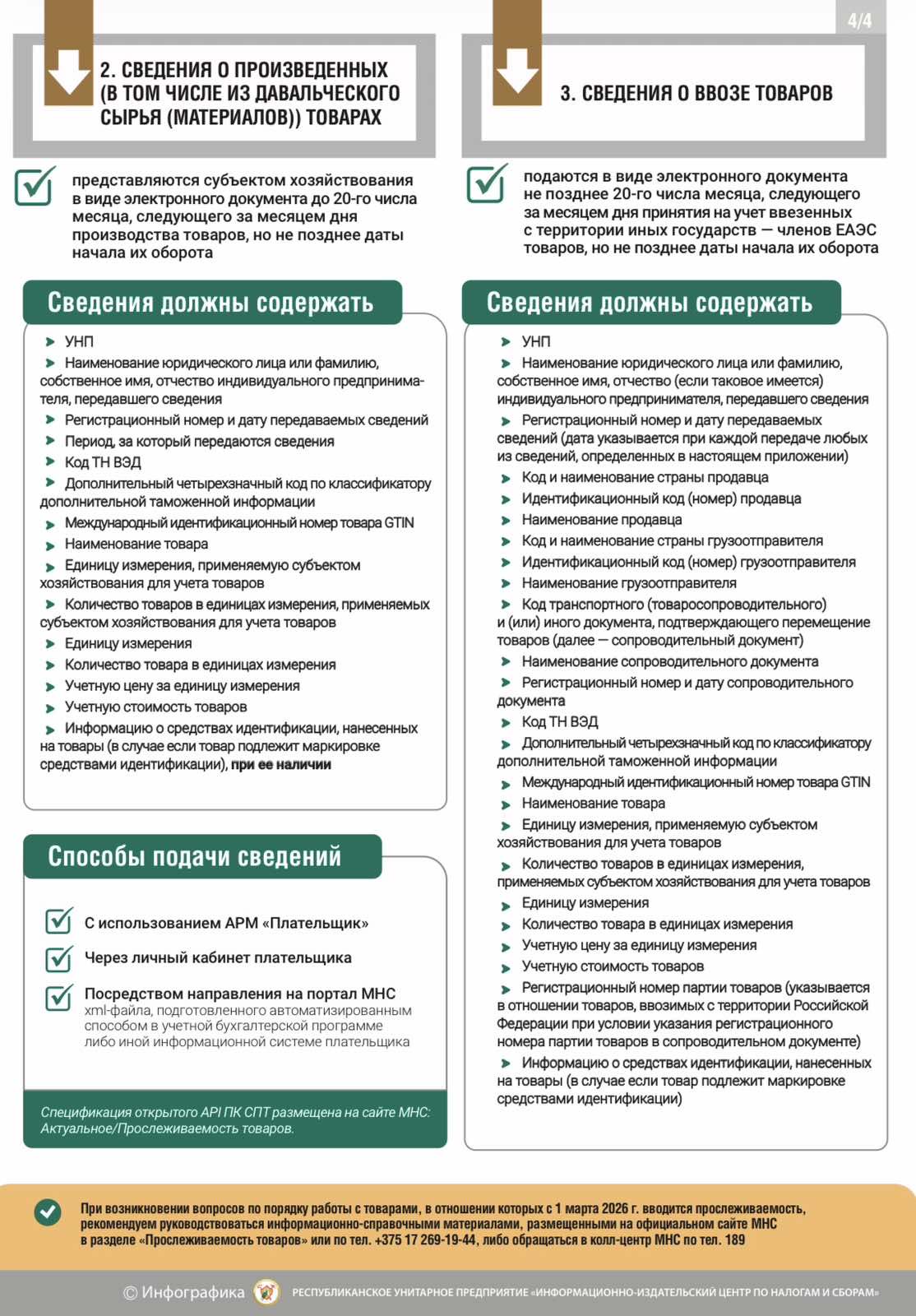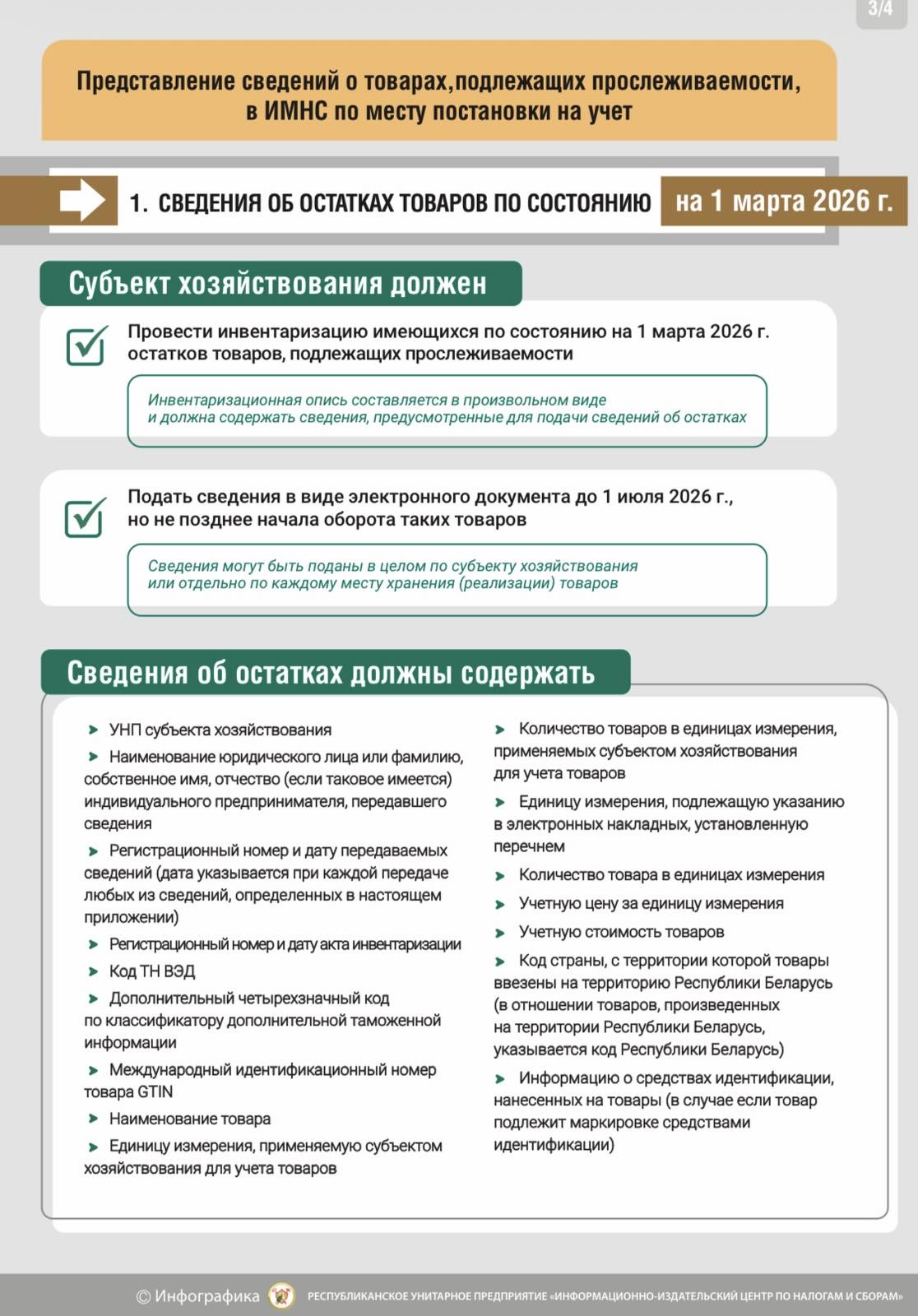 Министерство по налогам и сборам напоминает, что с 1 марта 2026 г. расширяется перечень товаров, подлежащих прослеживаемости. Так, с указанной даты прослеживаемости будут подлежать: