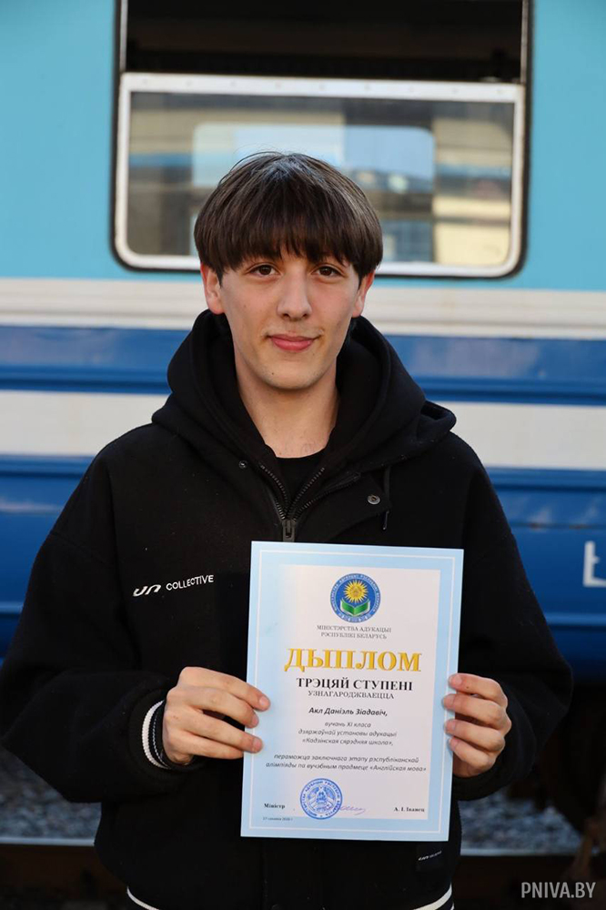 Например, Даниэля Акла, учащегося 11 класса Кадинской средней школы, который вошёл в число лучших и завоевал диплом третьей степени по английскому языку на заключительном этапе республиканской олимпиады по учебным предметам, встречали родители, педагоги и директор Кадинской средней школы.