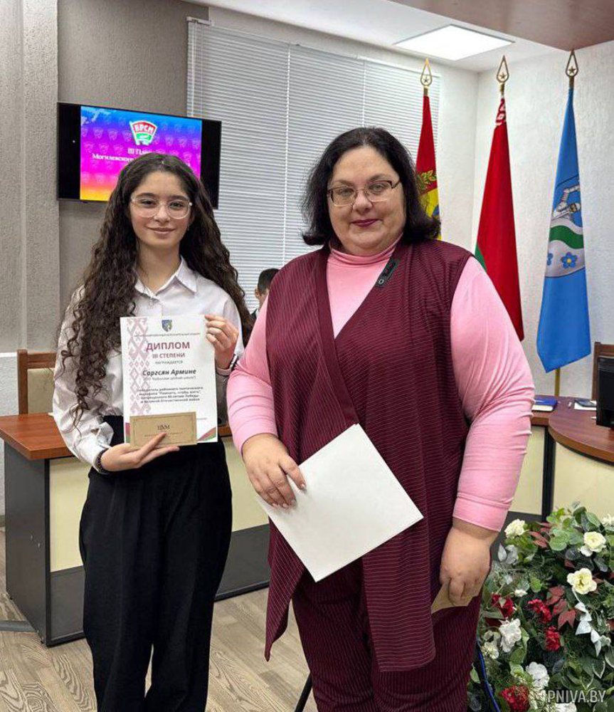Кроме того, начальник отдела идеологической работы Олеся Купцова вручила дипломы победителям районного поэтического марафона «Помнить, чтобы жить», посвященного 80-летию Победы. Призерами стали Армине Саргсян (Кадинская СШ), Ульяна Осипенкова (Дашковская СШ) и Анастасия Клещенок (Княжицкая СШ).