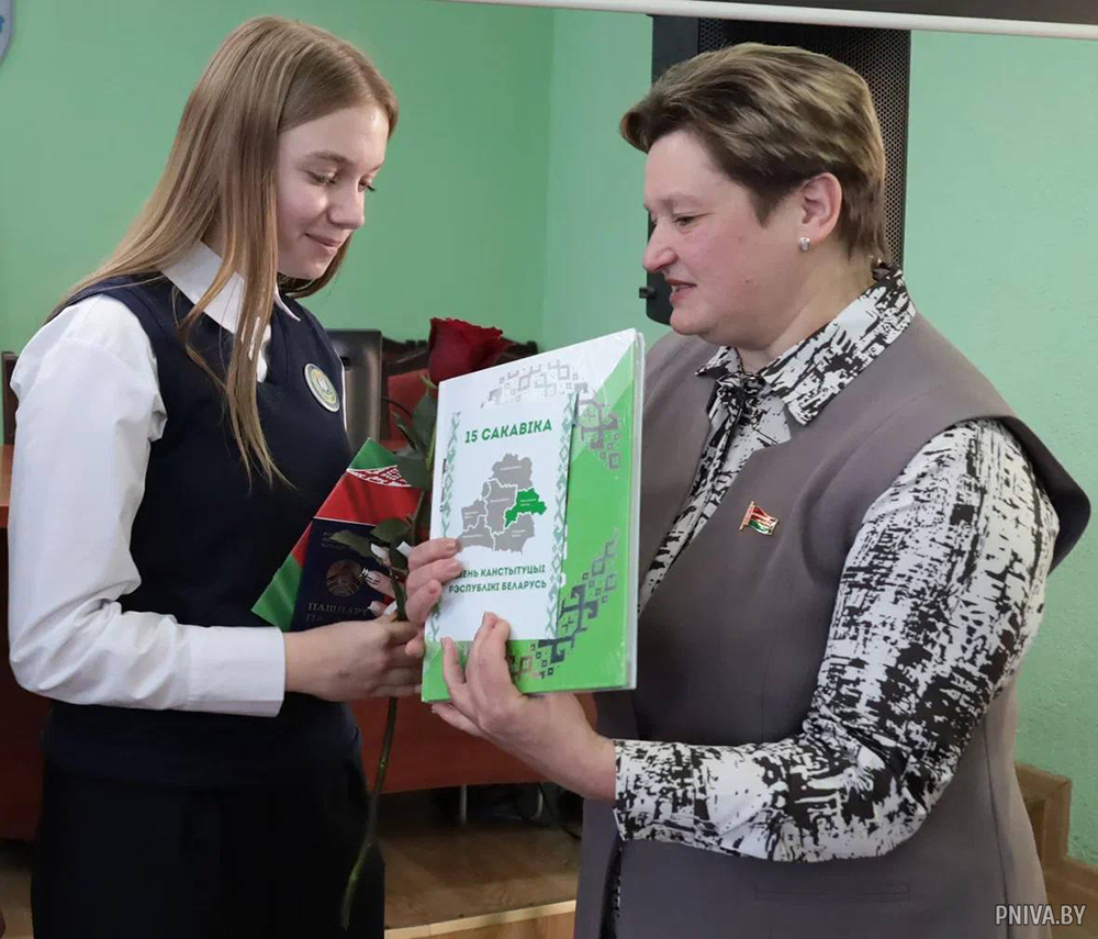 Мне сегодня хочется пожелать каждому из вас гордиться, что вы — граждане Республики Беларусь. Ребята, гордитесь своей страной. Здесь наши корни, здесь наша история, и вы часть этой истории. И сегодня, получая паспорт, вы присоединяетесь к большому сообществу граждан Республики Беларусь, — отметила депутат Палаты представителей Национального собрания Республики Беларусь.